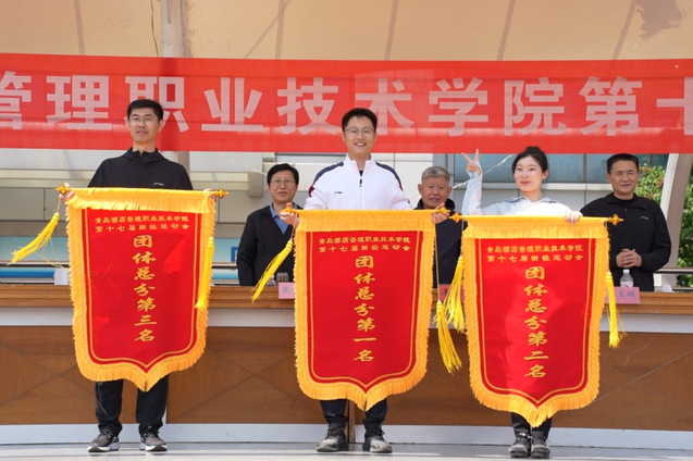 学校副校长宫恩龙主持运动会开闭幕式。在29日举行的闭幕式上,运动会总裁判长夏飞宣布了竞赛团体总分成绩,工商管理学院、酒店管理学院、烹饪学院获得学生组团体总分前三名,马院基础部、酒店管理学院、工商管理学院获得教工组团体总分前三名;副校长张宗国宣布了获得精神文明奖的单位名单,会计学院、信息工程技术学院、酒店管理学院获得学生组精神文明奖,酒店管理学院、信息工程技术学院、艺术学院获得教工组精神文明奖。学校领导向获得运动会竞赛团体总分前三名和精神文明奖的单位颁发了锦旗。