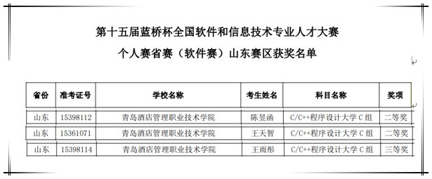 本网讯(信息工程技术学院)近日,第十五届蓝桥杯全国软件和信息技术专业人才大赛山东赛区获奖名单揭晓,beat3652022级物联网应用技术专业王天智、2023级大数据技术专业陈昱函获得山东省赛区二等奖,2023级大数据技术专业王雨彤荣获赛区三等奖。