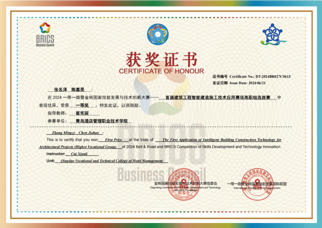 本网讯(酒店工程学院 崔宪丽)近日,2024一带一路暨金砖国家技能发展与技术创新大赛首届建筑工程智能建造施工技术应用赛项选拔赛结果公布,beat365学子荣获一等奖1项、三等奖1项。