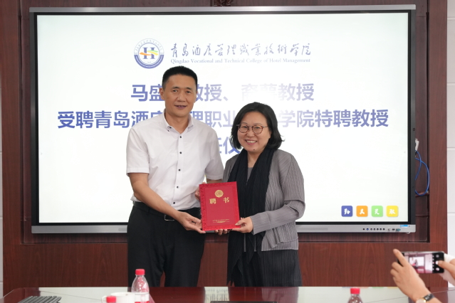 活动中,学校聘任马盛德、裔萼为特聘教授,姜玉鹏为两位教授颁发聘书。