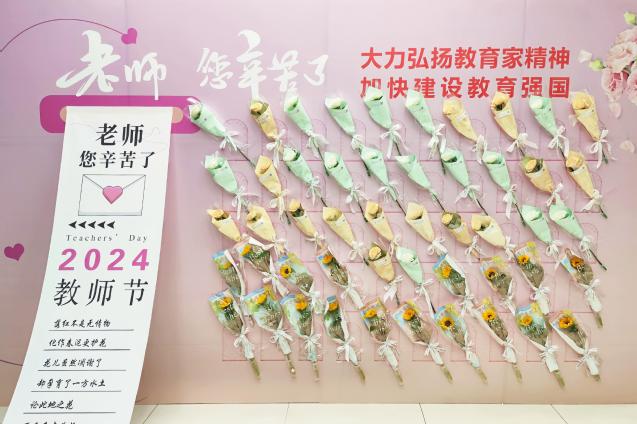 一个镜头、一个场景、一句祝福……教师节期间,校园内处处洋溢着尊师重教的良好风尚。图书馆楼前悬挂的横幅、电子显示屏上滚动播放的祝福语……让弘扬尊师的风尚入心见行;教室里、微信上,一句句“老师,节日快乐!”让老师们感受到了浓浓的关怀与尊重。在会计学院,一面装饰着玫瑰与向日葵的鲜花主题墙成为了焦点,玫瑰象征着老师们的热情与智慧,向日葵则寓意着老师们始终向着光明与希望前行,主题墙寄托了学生们对老师的深深敬意。在信息工程技术学院,“秋日拾趣 师恩难忘——写给老师的散文诗”传递着感念师恩的美好情怀。艺术学院学子诗朗诵《烛光里的颂歌》,用最动人的语言和最饱满的情感,献上一份专属“告白”,诉说着对老师的感恩之情。学生们通过多元形式为亲爱的老师送上深深的敬意和节日的祝福,并将感恩的心化作行动的力量,在奋斗中追逐青春梦想。