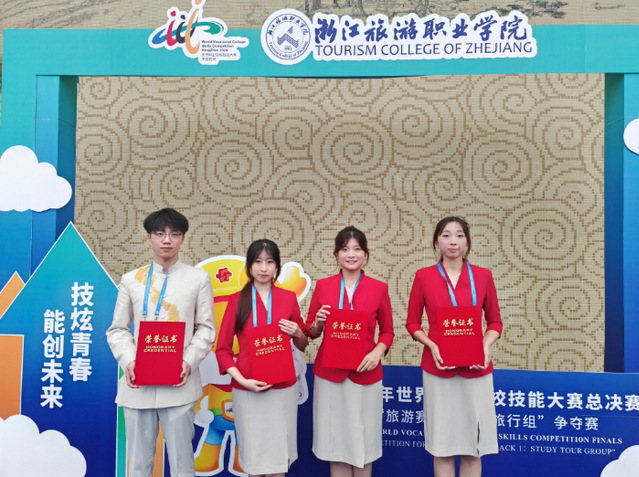 10月24-26日,2024年世界职业院校技能大赛总决赛“旅游赛道一研学旅行组”争夺赛在浙江杭州举办,beat365中国官网由武晓凡、杨紫涵、王惠敏、魏英华4名学生组成的参赛队以小组第一名、全国第二名的成绩获得金奖。