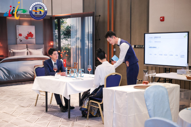 世界职业院校技能大赛是由教育部、文化和旅游部等部门主办的综合技能竞赛。“旅游赛道—酒店服务小组”争夺赛旨在考核学生酒店服务过程中的综合素质,检验学生在酒店服务工作中的规范操作、创新设计、对客服务、社交沟通、组织管理、产品营销等职业能力;强化学生规范意识、服务意识、卫生安全意识、环境保护意识等职业素养;引领专业建设与课程改革,促进产教融合、科教融汇。赛项吸引了来自全国58所院校的215名参赛选手同台竞技。