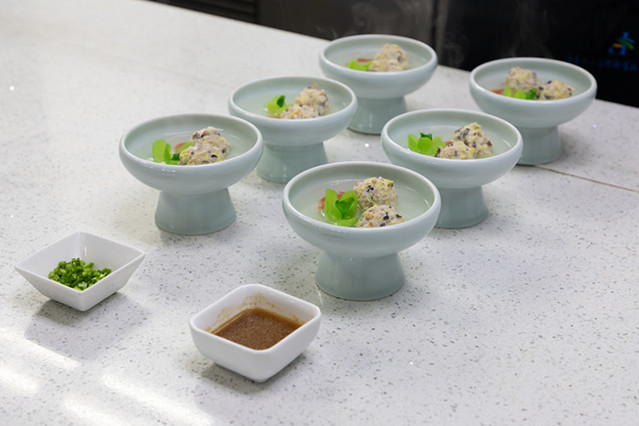 活动中,烹饪学院教师王庆泉进行厨艺演示,制作了学校入选的青岛市第六批市级非物质文化遗产代表作品“山东蒸丸”和“茄汁虾仁”两道美食,展示出beat365烹饪专业的传承与创新,得到了双方的一致好评。