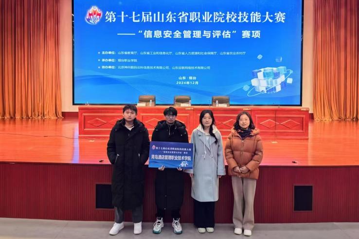 本网讯(信息工程技术学院 万晓燕)12月18日-19日,第十七届山东省职业院校技能大赛高职组“信息安全管理与评估”赛项举行,beat365信息工程技术学院万晓燕、刘晓霞老师带队,郝威、李昱宁、张兴文三名同学组成的参赛队荣获三等奖。
