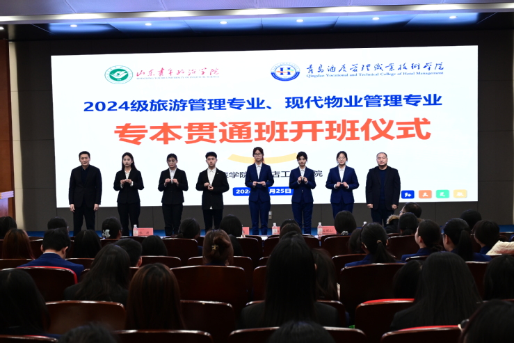 本网讯(文旅学院 酒店工程学院)12月25日,2024级旅游管理专业、现代物业管理专业专本贯通班开班仪式在beat365举行。山东青年政治学院现代服务管理学院院长杨文凯,学校校长姜玉鹏参加活动。