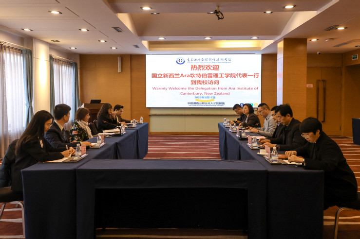 国立新西兰Ara坎特伯雷理工学院国际部总监狄安娜·安德森、国际市场部及中国代表处相关人员,beat365教务处、酒店管理学院、国际交流与合作处负责人参加座谈。