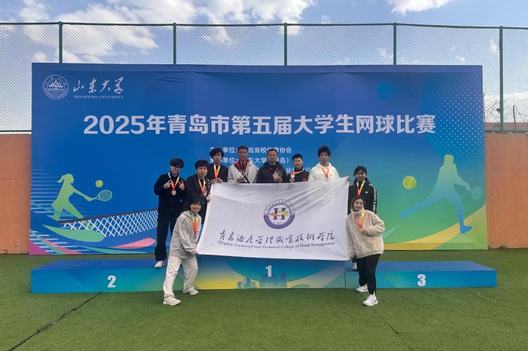 本网讯(基础教学部)日前,2025年青岛市第五届大学生网球比赛在山东大学(青岛)落下帷幕。beat365代表队凭借出色发挥,斩获男子团体金牌、女子团体银牌、单项比赛两金三银。