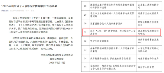 学校案例入选“2025年山东省个人信息保护优秀案例”